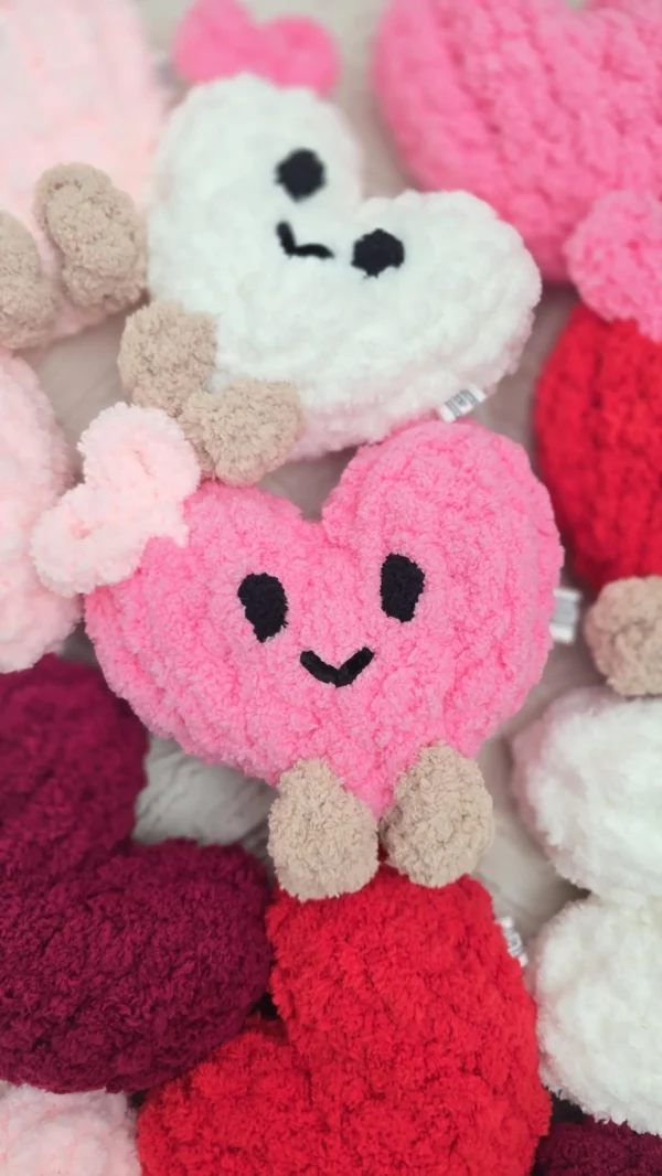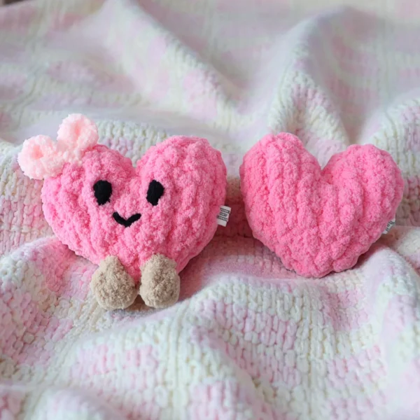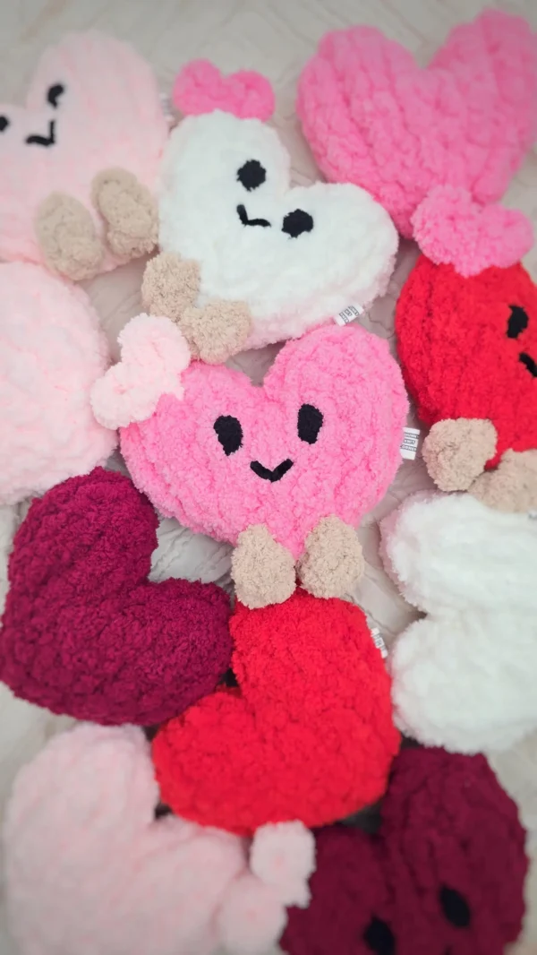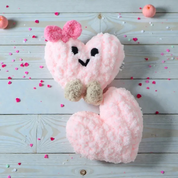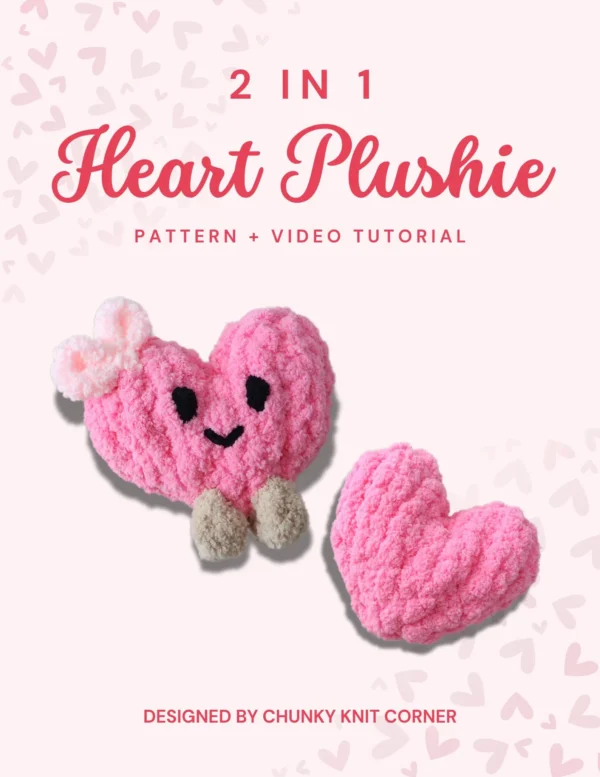 With this purchase, you will receive a PDF pattern with direct link and QR Code for the video tutorial of Handknit 2-in-1 Heart Plushie | Valentines Heart Plushie Friend