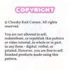 We’re thrilled that you want to incorporate ChunkyKnitCorner’s patterns into your workshop! While we’re happy to support you, we cannot allow our patterns, whether paid or free, to be distributed or republished—either in full or in part—through print or verbal means.