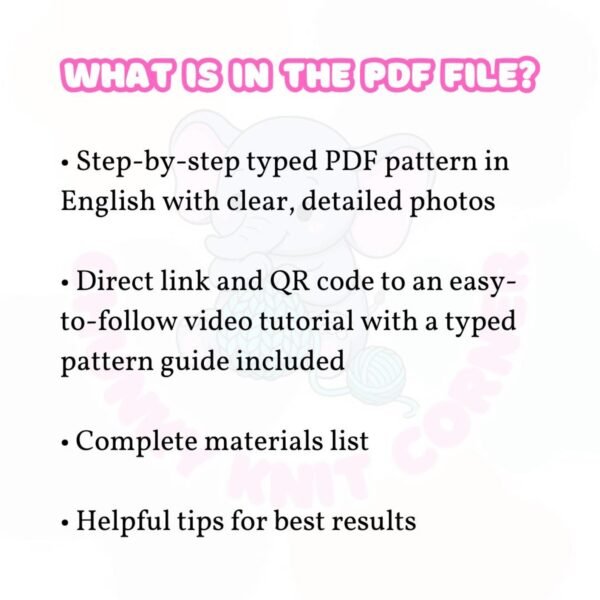 • Step-by-step typed PDF pattern in English with photo guides